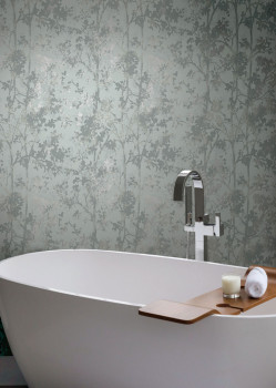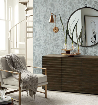 Blaue und silberne Blumentapete, MD7142, Modern Metals, York