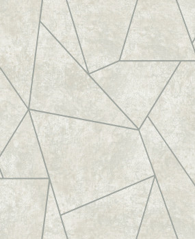Grau marmorierte Vliestapete, geprägte, silberne Linien bilden geometrische Muster.