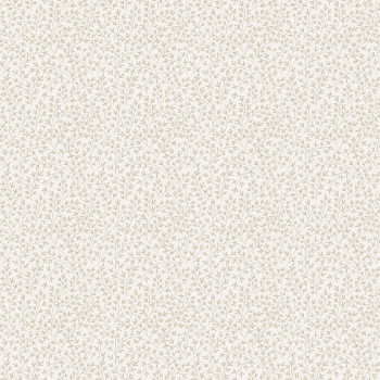 Matte, weiße Vliestapete mit kleinen Zweigen mit Blättern in Rosa.
