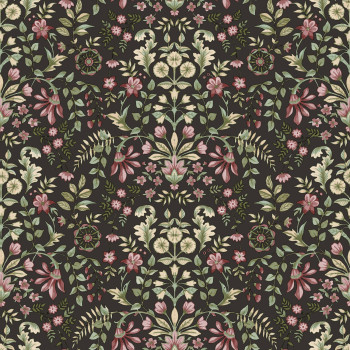 Schwarze Tapete mit floralem Ornamentmuster, 12329, Fiori Country, Parato