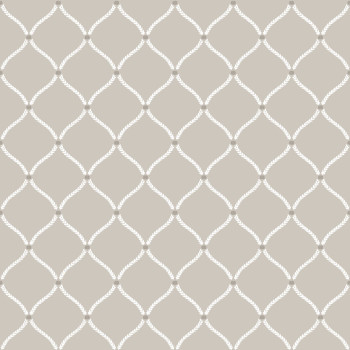 Matte, graue Vliestapete mit geometrischem Ornamentmuster in Weiß, der Hintergrund imitiert einen feinen Putz.