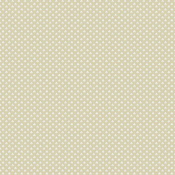 Matte, ockerfarbene Vliestapete mit kleinen Blättern in Weiß auf einem Hintergrund, der feinen Putz imitiert.