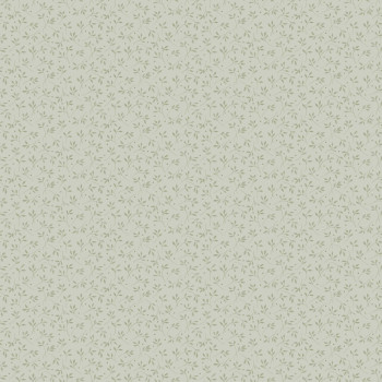 Matte, grüne Vliestapete mit kleinen Zweigen auf einem Hintergrund, der feinen Putz imitiert.