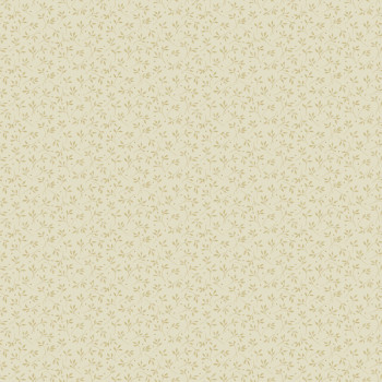 Matte, ockerfarbene Vliestapete mit kleinen Zweigen auf einem Hintergrund, der feinen Putz imitiert.