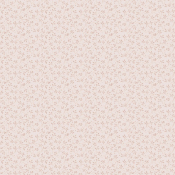 Matte, rosa Vliestapete mit kleinen Zweigen auf einem Hintergrund, der feinen Putz imitiert.