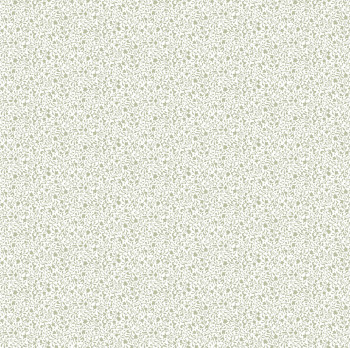 Matte, weiße Vliestapete mit kleinen floralen Ornamenten in grüner Farbe, der Hintergrund imitiert einen feinen Putz.