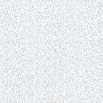 Matte, weiße Vliestapete mit kleinen floralen Ornamenten in blassblauer Farbe, der Hintergrund imitiert einen feinen Putz.