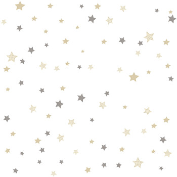 Glatte weiße Vliestapete, graue und beige Sterne.