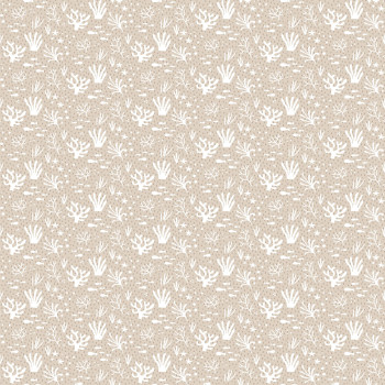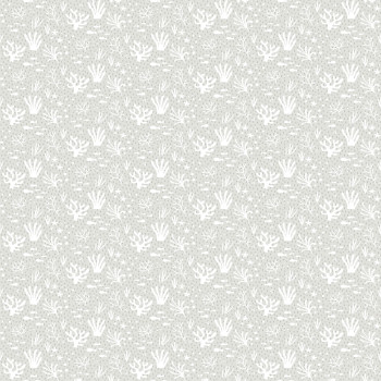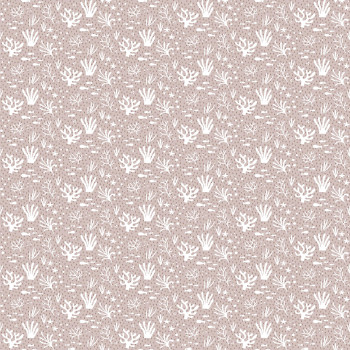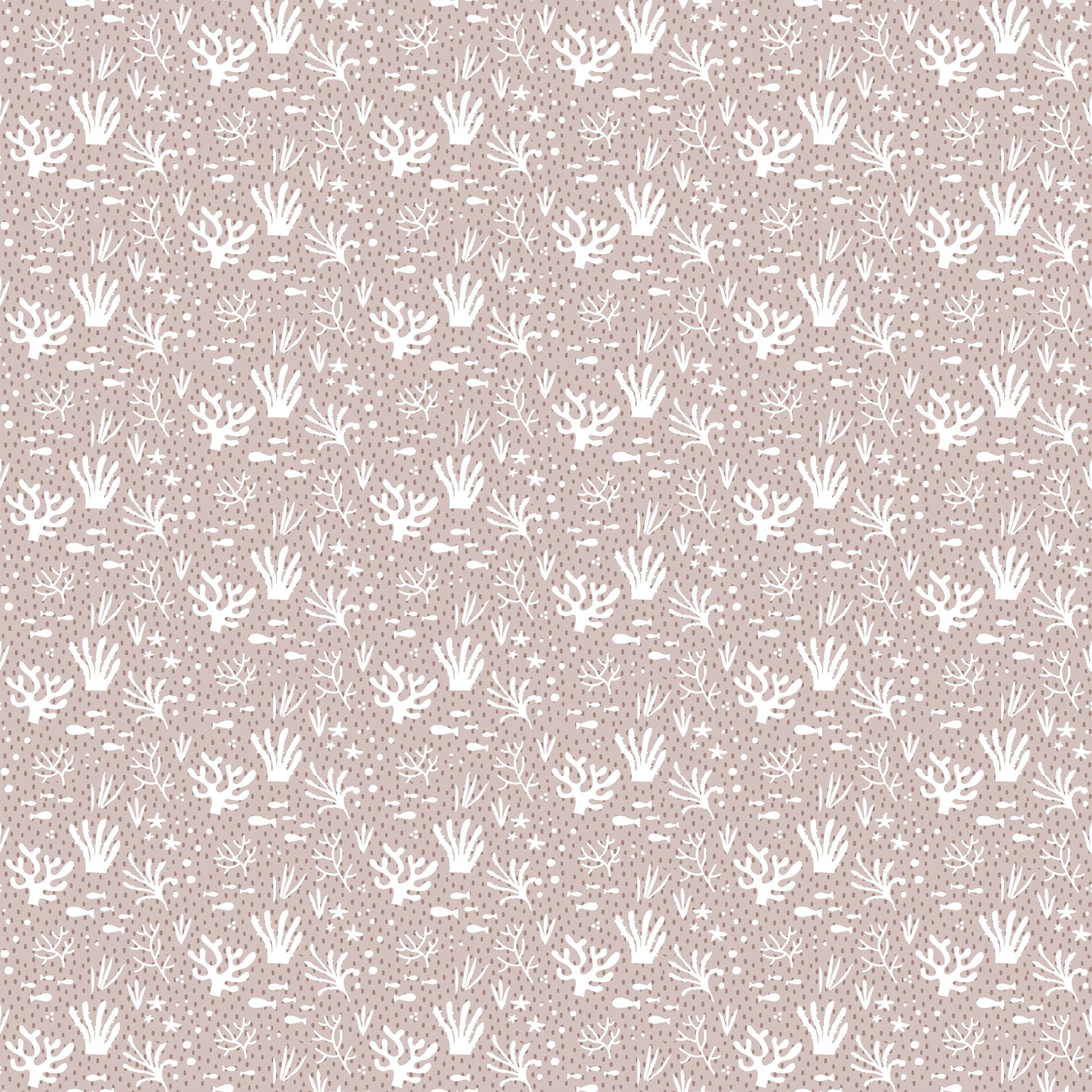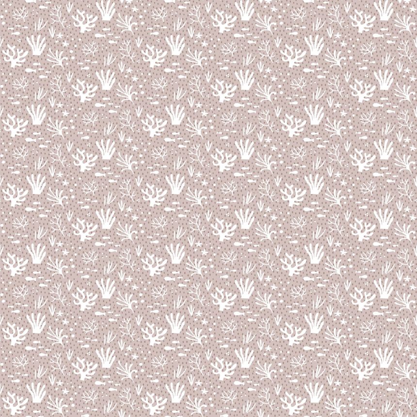 Sanft geprägte rosa-weiße Vliestapete, Motive von Fischen und Wasserpflanzen.