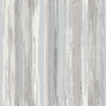 Matte Vliestapete mit Vinyloberfläche und geprägter Textur, unregelmäßige vertikale Streifen in Blau-, Grau- und Beigetönen.