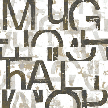 Glatte weiße Vliestapete, Buchstaben in Schwarz-, Grau- und Braunbeigetönen. Das Innenfoto dient nur zur Illustration.