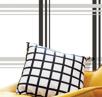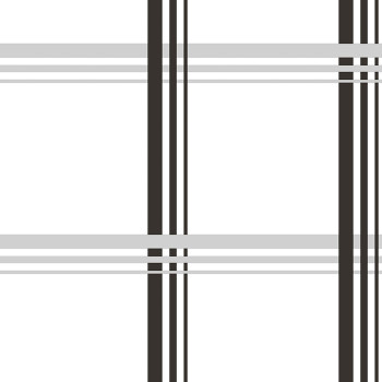 Fein strukturierte weiße Vliestapete, grau-silberne und schwarze Linien bilden ein kariertes Muster.
