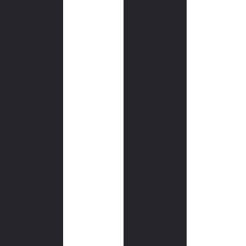 Glatte Vliestapete, schwarz-weiße Streifen. Streifenbreite 13 und 13,5 cm. Das Innenfoto dient nur zur Illustration.