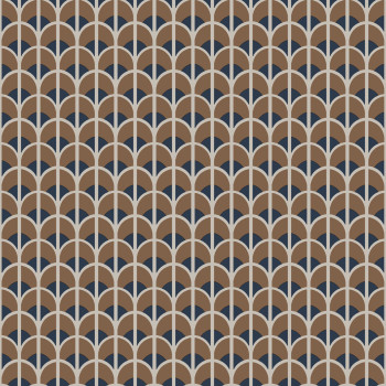 Fein strukturierte Vliestapete mit Vinyloberfläche, gewölbtes geometrisches Muster in Braun- und Blautönen. Die Innenansicht ist nur illustrativ - verschiedene Farben.