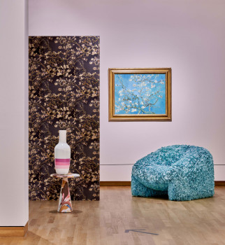 Ergänzt wird der Katalog durch eine Tapete mit einem Kreis, in dem ein Blumenstrauß platziert ist, der in den Gemälden des Meisters Van Gogh verwendet wurde. Tapeten mit markanten Pinselstrichen und verschiedenen Blumen auf farblich kontrastierenden Hintergründen bringen die Malerei in Ihr Zuhause.