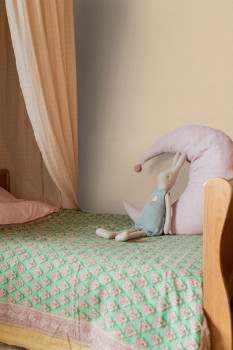Beige glatte Vliestapete, dezentes Gittermuster.