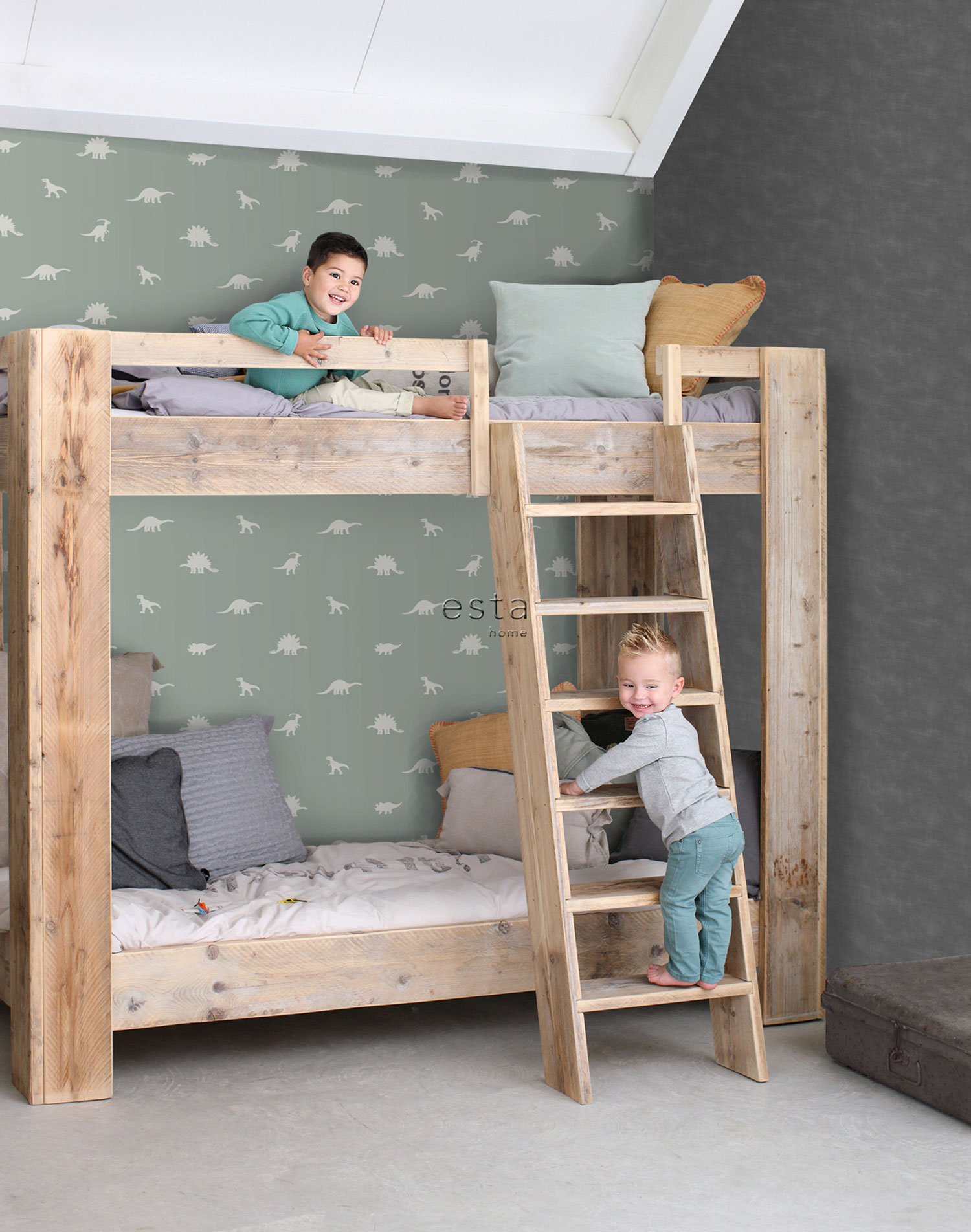 Grüne Kindertapete mit Dinosauriern 139284, To the Moon and Back, Esta Home