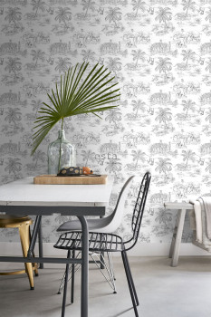 Glatte schwarz-weiße Vliestapete, wilde Tiermotive.