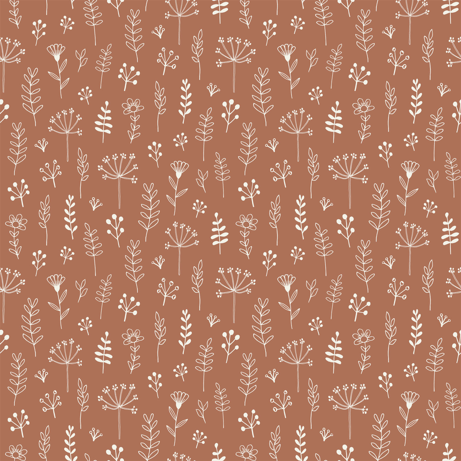 Glatte braune Vliestapete, Motive aus Blumen und Blättern.