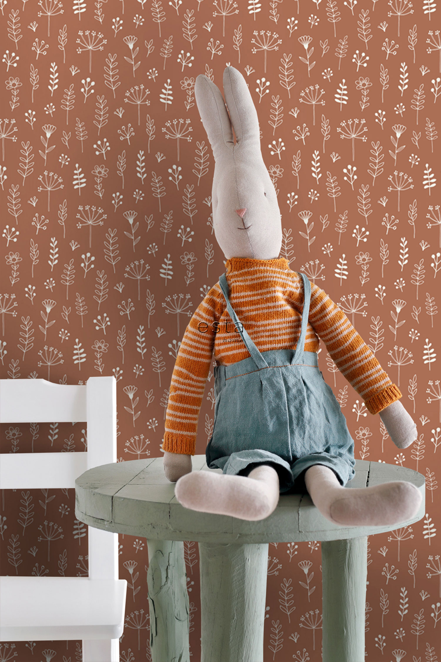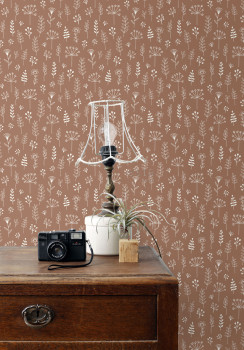 Braune Vliestapete mit Blumen und Blättern, 139325, To the Moon and Back, Esta Home