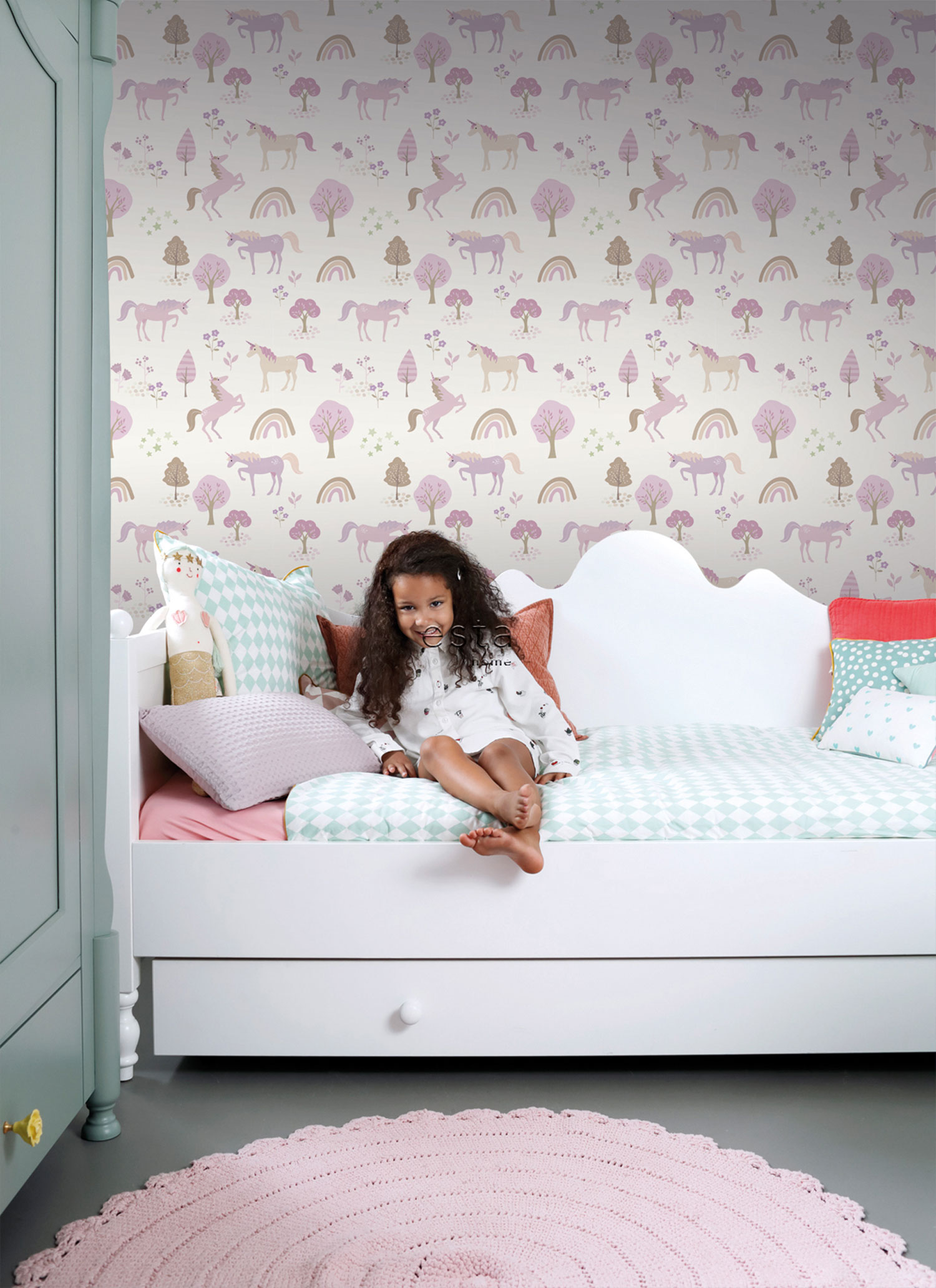 Lila Kindertapete, Regenbögen und Einhörner, 139504, To the Moon and Back, Esta Home