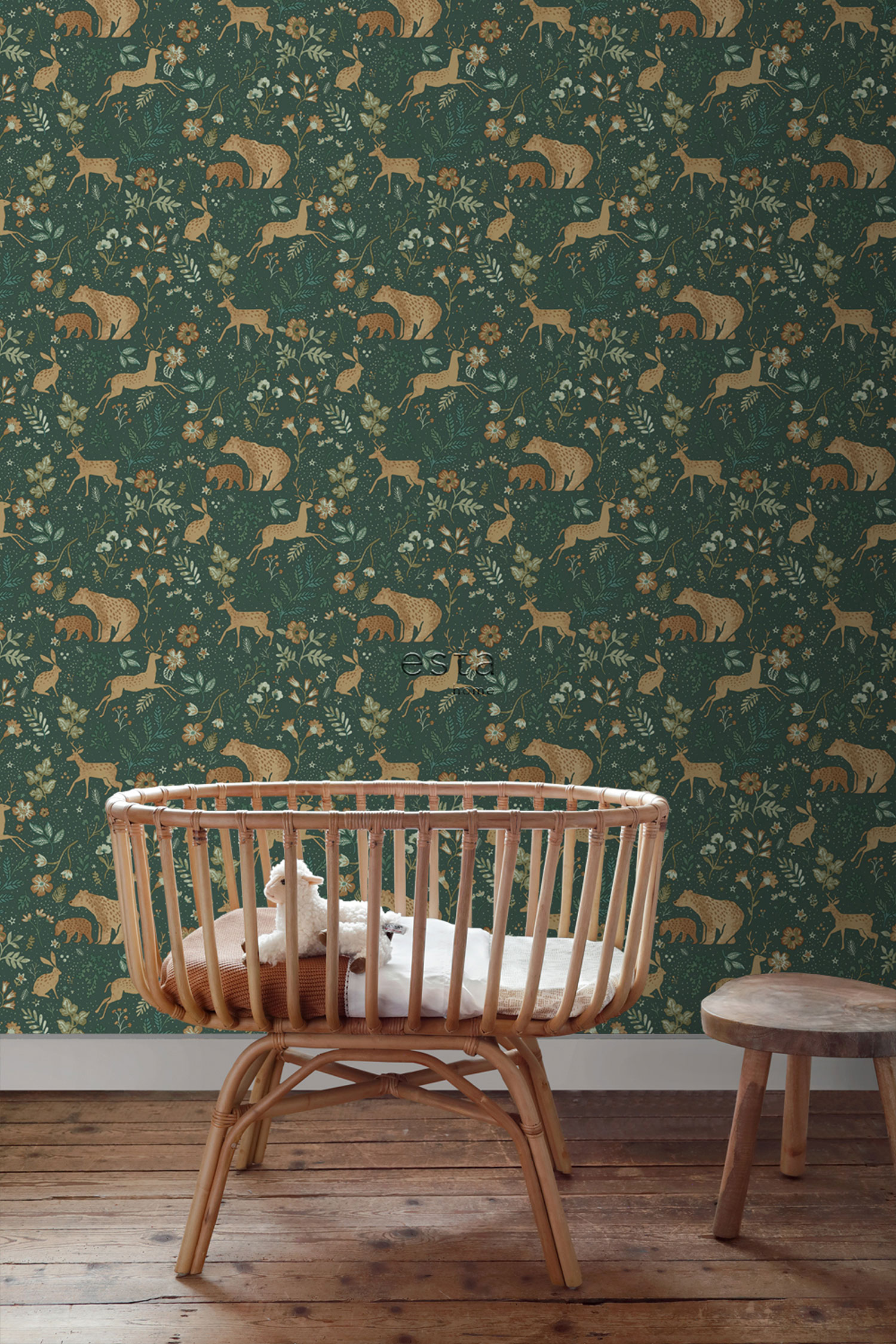 Grüne Kindertapete mit Tieren, 139587, To the Moon and Back, Esta Home