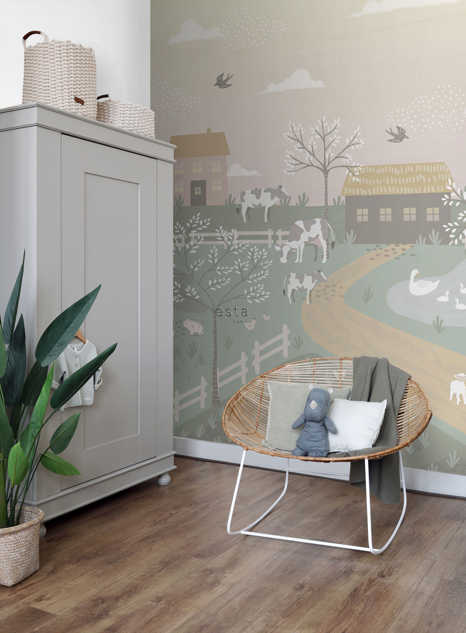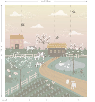 Vliestapete Wandbilder mit Bauernhoftieren. Die Tapete hat ein durchgehendes Muster, für eine größere Breite müssen Sie einfach ein weiteres Stück kaufen. 5 Teile 50x279cm