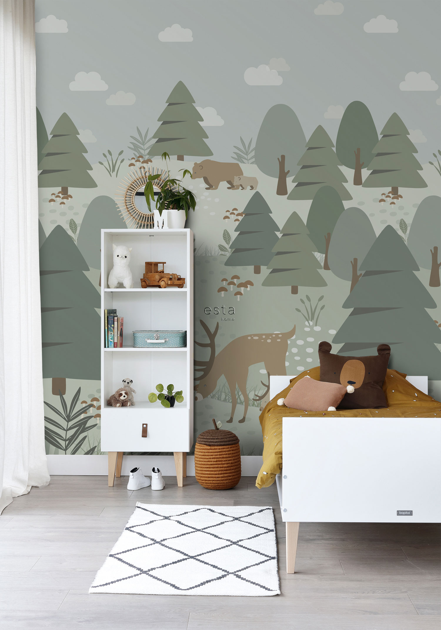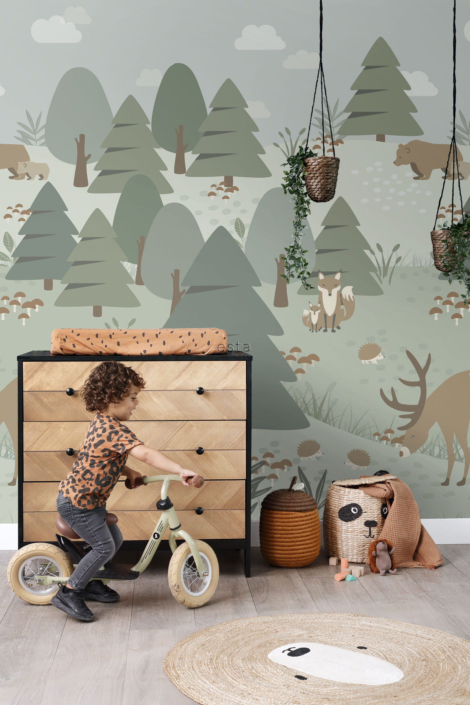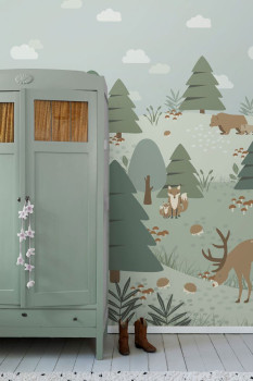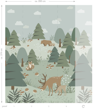 Vliestapete Wandbilder mit Waldtieren. Die Tapete hat ein durchgehendes Muster, für eine größere Breite müssen Sie einfach ein weiteres Stück kaufen. 4 Teile 50x279cm