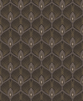 Fein strukturierte schwarze Vliestapete – Muster in Beige-, Gold- und Bronzetönen.