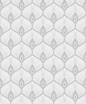 Fein strukturierte weiße Vliestapete - schwarz-silbernes Muster.
