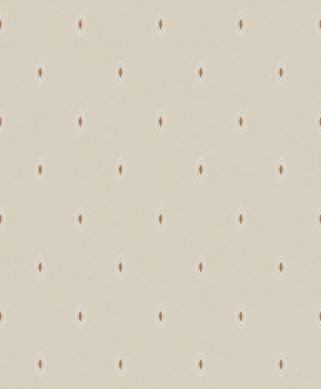 Glatte beigefarbene Vliestapete mit dezent geprägtem Muster in Bronze, Silber und Weiß.