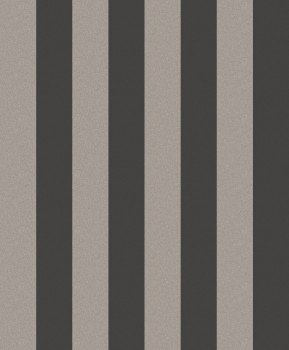 Glatte Vliestapete, Streifen in den Farben Schwarz und Halbglanz Grau/Silber/Metallic-Glanz. Streifen 6,5 cm