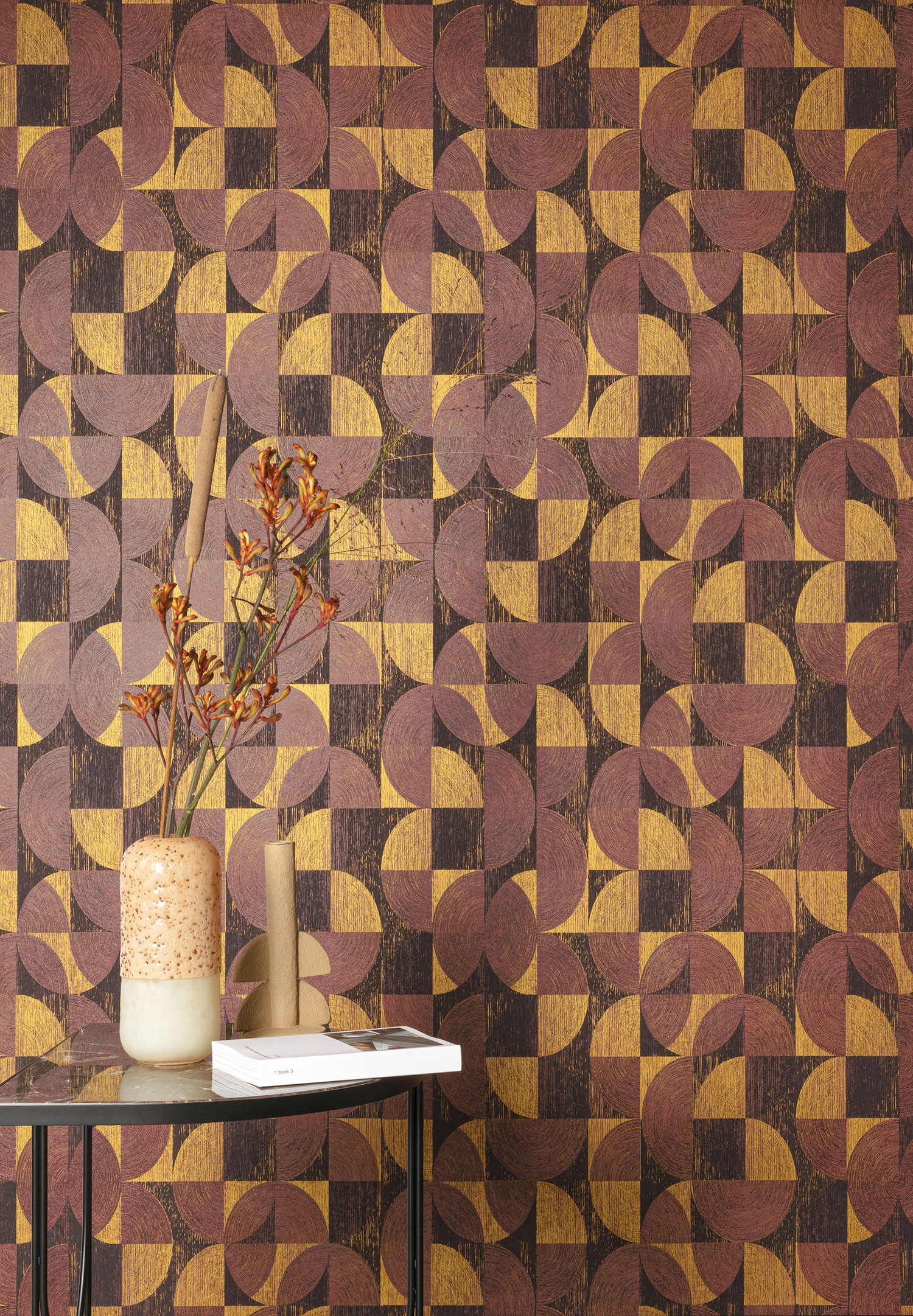 Geometrische Tapete in Rot und Gold, SPI003, Spirit of Nature, Khroma by Masureel
