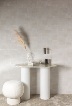 Die Farben und Muster dieser Kollektion spiegeln die Versöhnung des Menschen mit der Natur wider. Der Mensch nutzt seit Jahrtausenden natürliche Materialien. Anstatt Bleistifte und Pinsel zu verwenden, haben wir Muster aus Sisalseilen hergestellt, Formen aus Marmor konstruiert und Muster aus Naturgarnen gestickt.