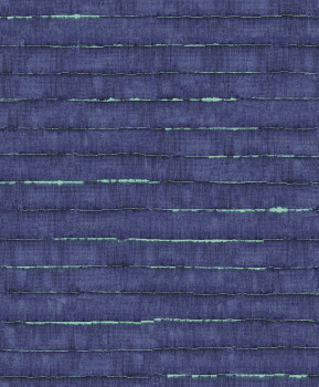 Vliestapete, Blautöne, unregelmäßige horizontale metallische grüne Streifen.