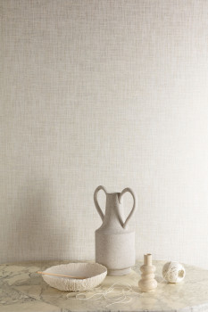 Beigefarbene Vliestapete, abwechselnd matt und halbglänzend, das Muster erinnert an eine Stofftextur.