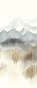 • Das einzigartige Muster aus Panoramabergen wurde ursprünglich auf Textilgarn gemalt, was zu einem atemberaubenden Aquarelleffekt führte. Der unregelmäßige Hintergrund verleiht der Zeichnung Tiefe.