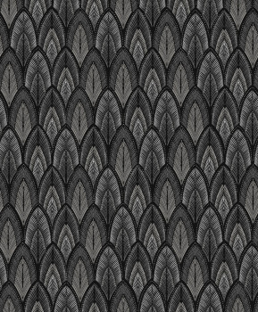 Schwarz-silberne Vliestapete mit Blättern, SUM401, Summer, Khroma by Masureel