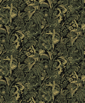 Schwarz-grün-goldene Tapete mit Blumen und Blättern, SUM505, Summer, Khroma by Masureel