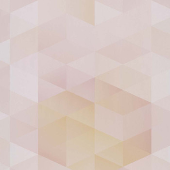 Abwaschbare Vliestapete mit feiner Sandstruktur. Geometrisches Muster, das einem Kaleidoskop in rosa Farbtönen ähnelt.