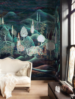 Vlies-Fototapete, Motiv Natur, Bäume, Landschaft. Grobe Stofftextur. Für größere Breite kombinierbar mit Tapete DGSUM2021 und DGSUM2023 – siehe Foto. Das Foto des Innenraums dient nur zur Veranschaulichung.