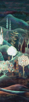Jedes Muster und Motiv in dieser Tapetenkollektion spiegelt die Inspiration der indischen Landschaft wider, wo Blumen, Blätter und Bäume von immenser Bedeutung sind. Die indische Kultur hat eine starke Verbindung zur Natur, was in den Tapetenmustern dieser Kollektion deutlich wird. Diese heben nicht nur die visuelle Schönheit von Blumen, Blättern und Bäumen hervor, sondern respektieren auch die tiefe Bedeutung, die die Natur für den indischen Lebensstil hat.