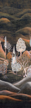 Vlies-Fototapete, Motiv Natur, Bäume, Landschaft. Grobe Stofftextur. Für größere Breite kombinierbar mit Tapete DGSUM2031 a DGSUM2033 – siehe Foto. Das Foto des Innenraums dient nur zur Veranschaulichung.