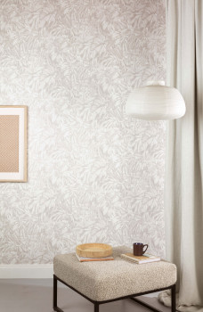 Grau-weiße Tapete mit Blättern, ZEN101, Zen, Zoom by Masureel