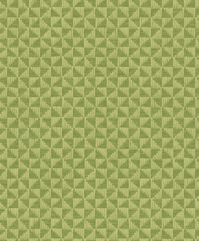 Grüne Vliestapete, geometrische Muster inspiriert von natürlichen Materialien.