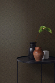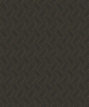 Schwarze Vliestapete, ineinander verschlungene Bronzelinien bilden geometrische 3D-Muster.