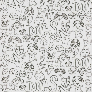 Schwarz-weiße Vliestapete mit Hundemotiven.