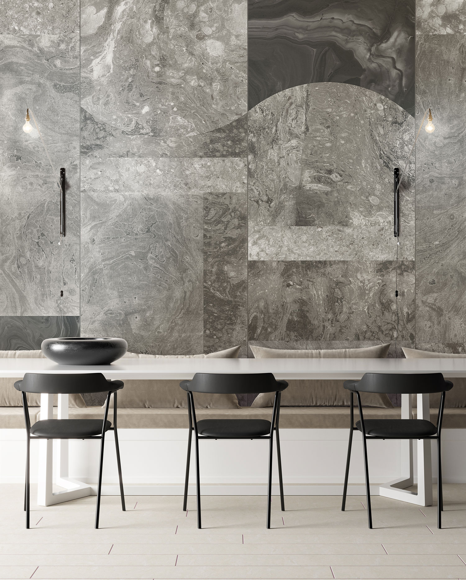 Vlies-Wandbilder, graue Marmorimitation. Kombinierbar mit den Fototapeten DG3ALI1061, DG3ALI1062, DG3ALI1063 und DG3ALI1065 für größere Breite - siehe Foto.
