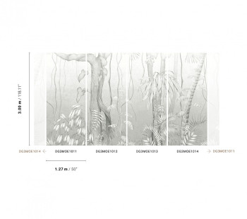 Graue Vlies-Wandbilder mit dem Motiv Blätter und Bäume. Das Innenfoto dient nur zur Illustration. Kombinierbar mit den Fototapeten DG3MOE1011, DG3MOE1013 und DG3MOE1014 für größere Breite - siehe Foto.