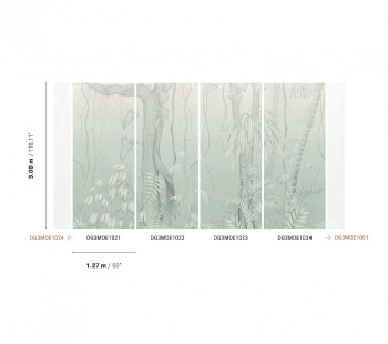 Graublaue Vlies-Wandbilder mit dem Motiv Blätter und Bäume. Das Innenfoto dient nur zur Illustration. Kombinierbar mit den Fototapeten DG3MOE1021, DG3MOE1022 und DG3MOE1023 für größere Breite - siehe Foto.